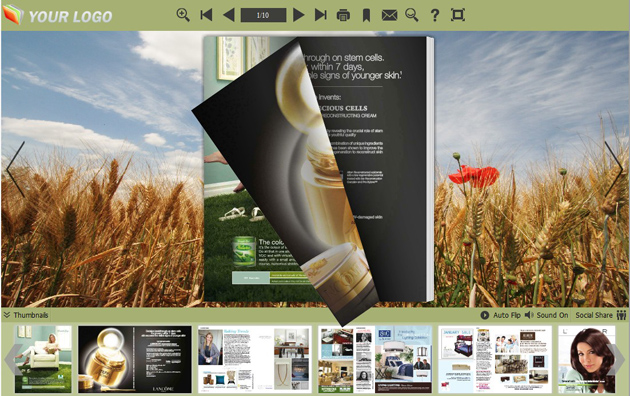 The countryside is beautiful when crops are planted. We have designed a series cornfield flip books themes for our users. The background is just taken in beautiful wheat field. Ear of wheat is green or golden. In the first theme, the wind is blowing and the sky is blue. We can predict an abundant harvest. And then in the second and the third themes, autumn is coming. Import one of them into the magazine maker and make your flip books displaying in the attractive cornfield is really excellent. You can also have a look at the demo we have provided to preview the result. Have you got any ideas about which flash magazine is in need of the cornfield theme?