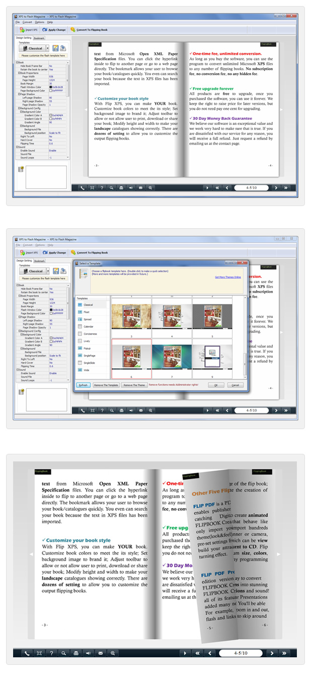 XPS to Flash Magazine is very powerful software that could create flash magazine from XPS format in an easy way. You can create an Interactive Flash Magazine less than 10 minutes, and don't need any programming skills, just three steps to build realistic flash ebook with real page turning effect.